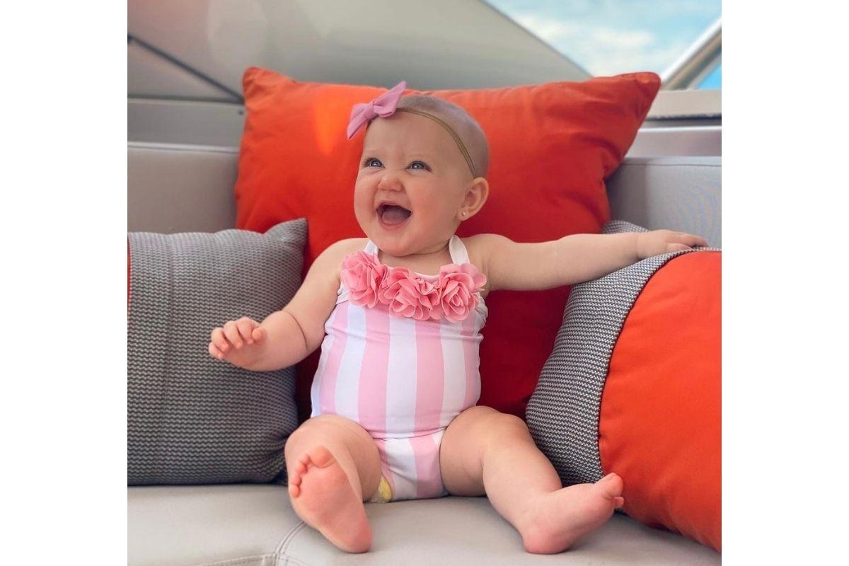 A família está curtindo um tempo junto em Trancoso, na Bahia. A modelo deixou claro que as fotos foram só pose e que a bebê iria viajar no seu colo, em segurança.