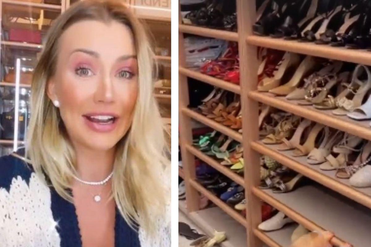 Nos vídeos, é possível ver um pouco do closet da modelo, que conta com várias prateleiras a mostra com sapatos de todas as cores. Nas imagens, a bebê apare sentada no chão brincando com os calçados da mãe, retirando do armário, um por um.