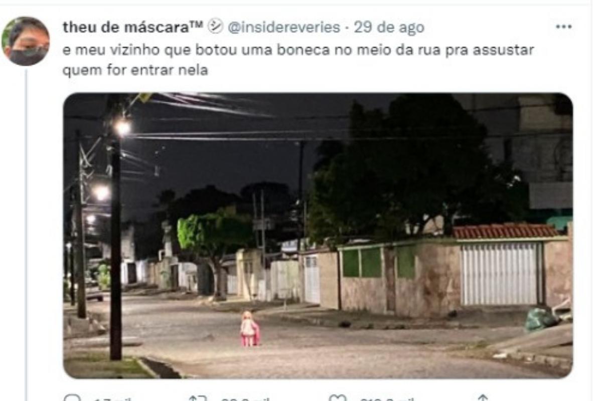 Matheus é vizinho de Alves e fotografou a boneca sentada na cadeira no meio da rua, e postou no Twitter. O post viralizou rapidamente. “Não esperava essa repercussão. Assim que postei no Twitter foi uma coisa engraçada. Quem vai imaginar uma boneca no meio da rua, 11 horas da noite, do nada? Acabei só compartilhando com a galera da minha bolha. Não deu 30 minutos e tinha 300 likes”, detalha.