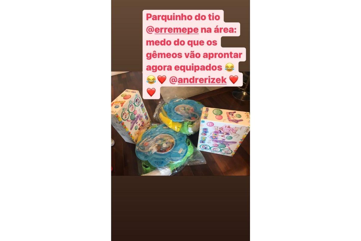 No dia 1º de maio, André Rizek compartilhou uma foto com os gêmeos, Pedro e João, no colo. Os bebês vieram ao mundo em abril deste ano. Desde que os meninos nasceram, o jornalista esportivo tem compartilhado os momentos da família nas redes sociais.