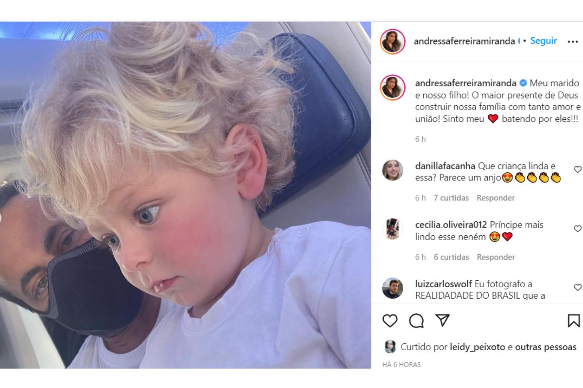 Andressa Ferreira escreveu nos comentários uma declaração ao filho e o marido: “Amores da minha vida”. Os outros seguidores também mandaram mensagens de carinho, como “Queria ter um pai que nem você” e “Lindos que Deus abençoe a sua família”.