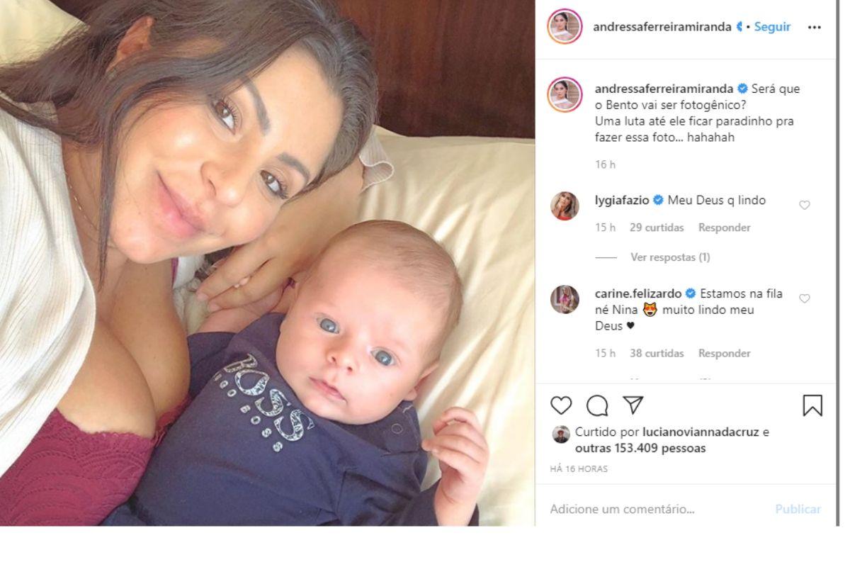 Na última terça-feira, 4 de fevereiro, Andressa Miranda compartilhou uma foto com o filho Bento em seu Instagram e deixou os fãs babando pela criança.