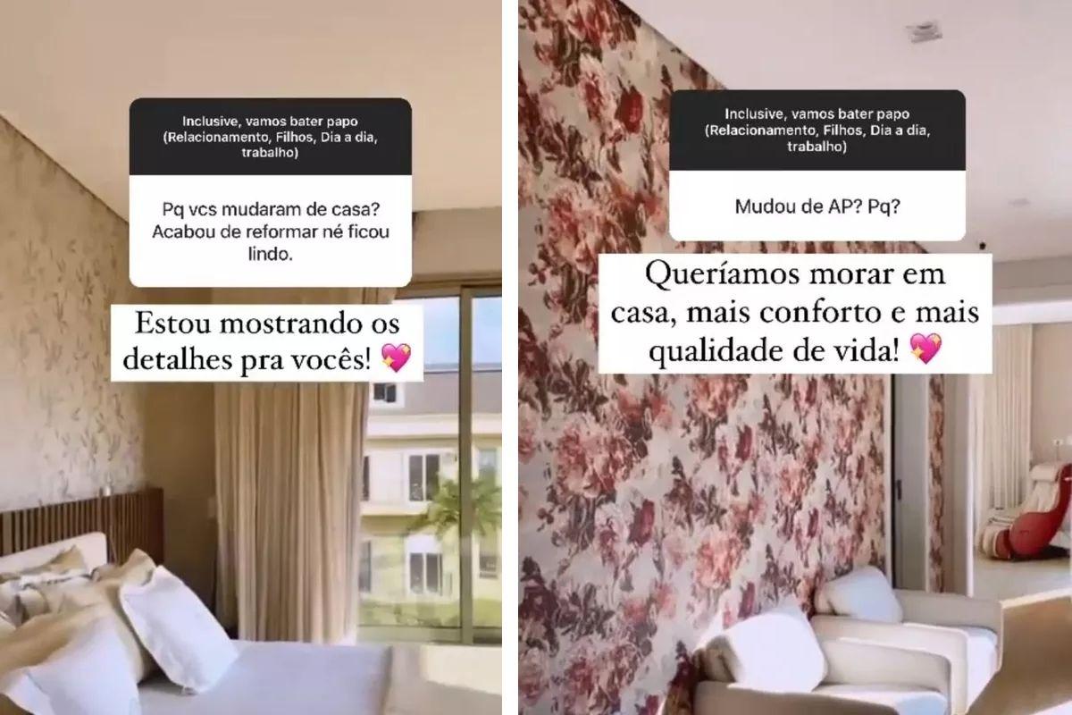 Nas redes, a mãe explicou que decidiu deixar o apartamento onde moravam anteriormente mobiliado e se mudar para a casa, que era o sonho da família. “Mais conforto e qualidade de vida”, falou ela, sobre a motivação da mudança. Nos stories, a pedido dos internautas, ela mostrou detalhes da nova casa.