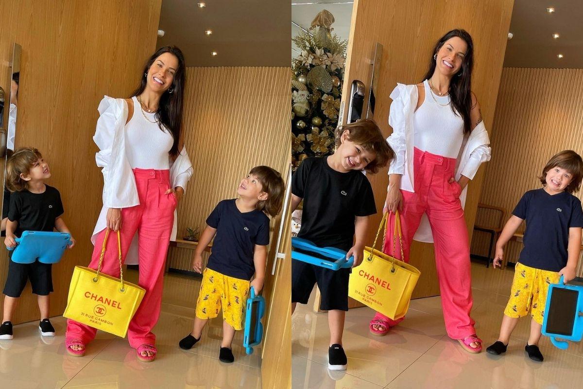 Andressa Suita publicou uma sequência de fotos ao lado dos filhos, Gabriel e Samuel, onde brinca em relação às poses engraçadas dos meninos, na legenda ela escreveu: “A interação deles pra foto é maravilhosa…”, os dois aparecem fazendo caretas e brincando.