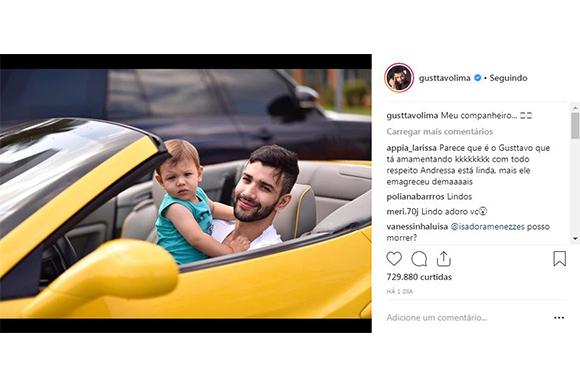 O cantor Gusttavo Lima decidiu dividir com seus seguidores um momento com seu filho Gabriel, de 1 ano, em sua Ferrari. O clique chamou atenção dos seguidores, gerou mais de 700 mil likes e diversos comentários, entre eles, o de uma internauta que chamou atenção. “Gusttavo, faz um filho comigo, e vamos continuar reproduzindo essa genética maravilhosa”, escreveu a fã.