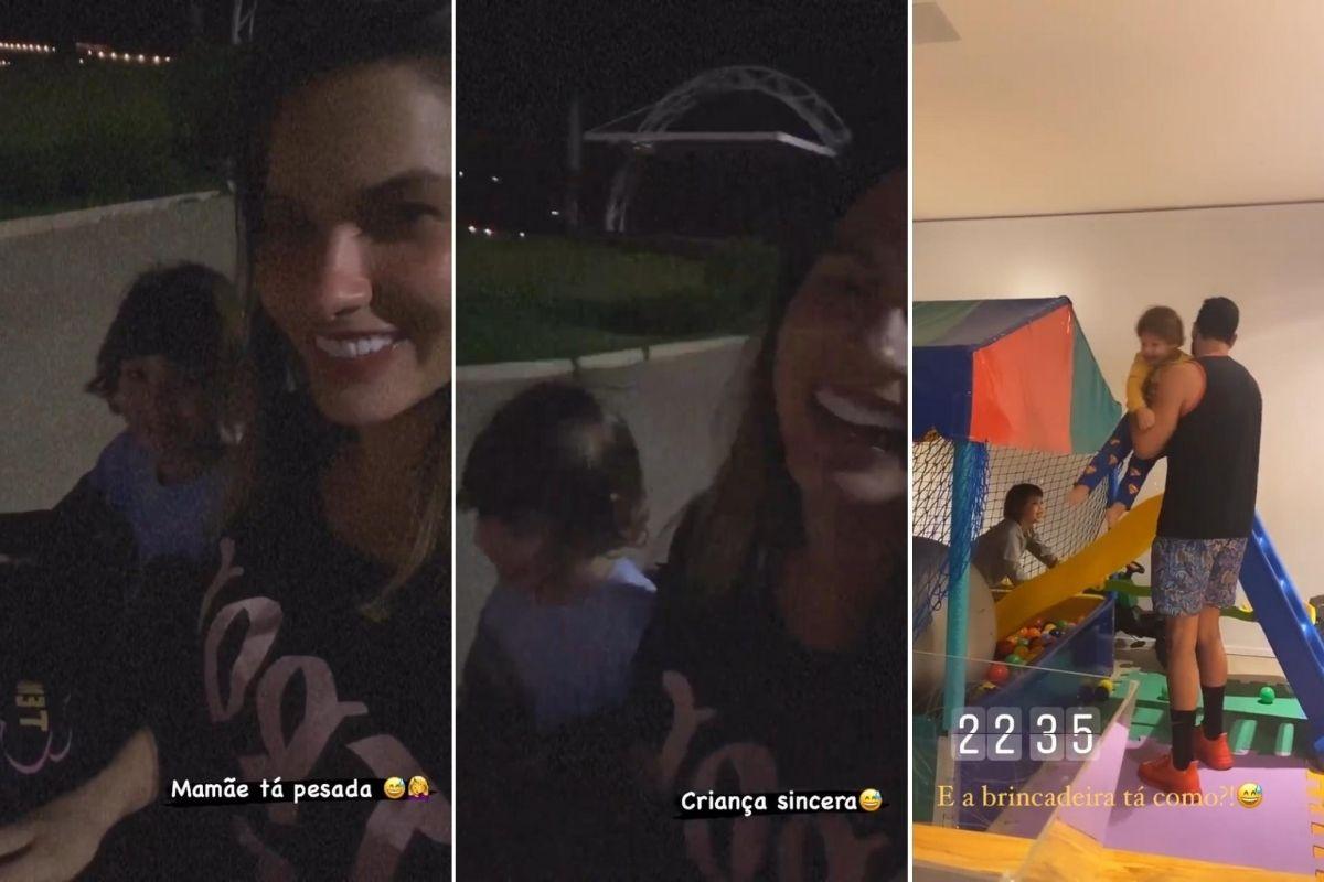 Nas imagens, a modelo aparece acompanhando os dois filhos brincando no quintal, na parte da noite, em carrinhos elétricos. Quando ela subiu no brinquedo de Gabriel, ele acabou sendo sincero: “A mamãe é pesada”. Andressa, então, perguntou: “A mamãe não cabe no seu carrinho?”. Ele rebateu: “Não cabe, não”.
