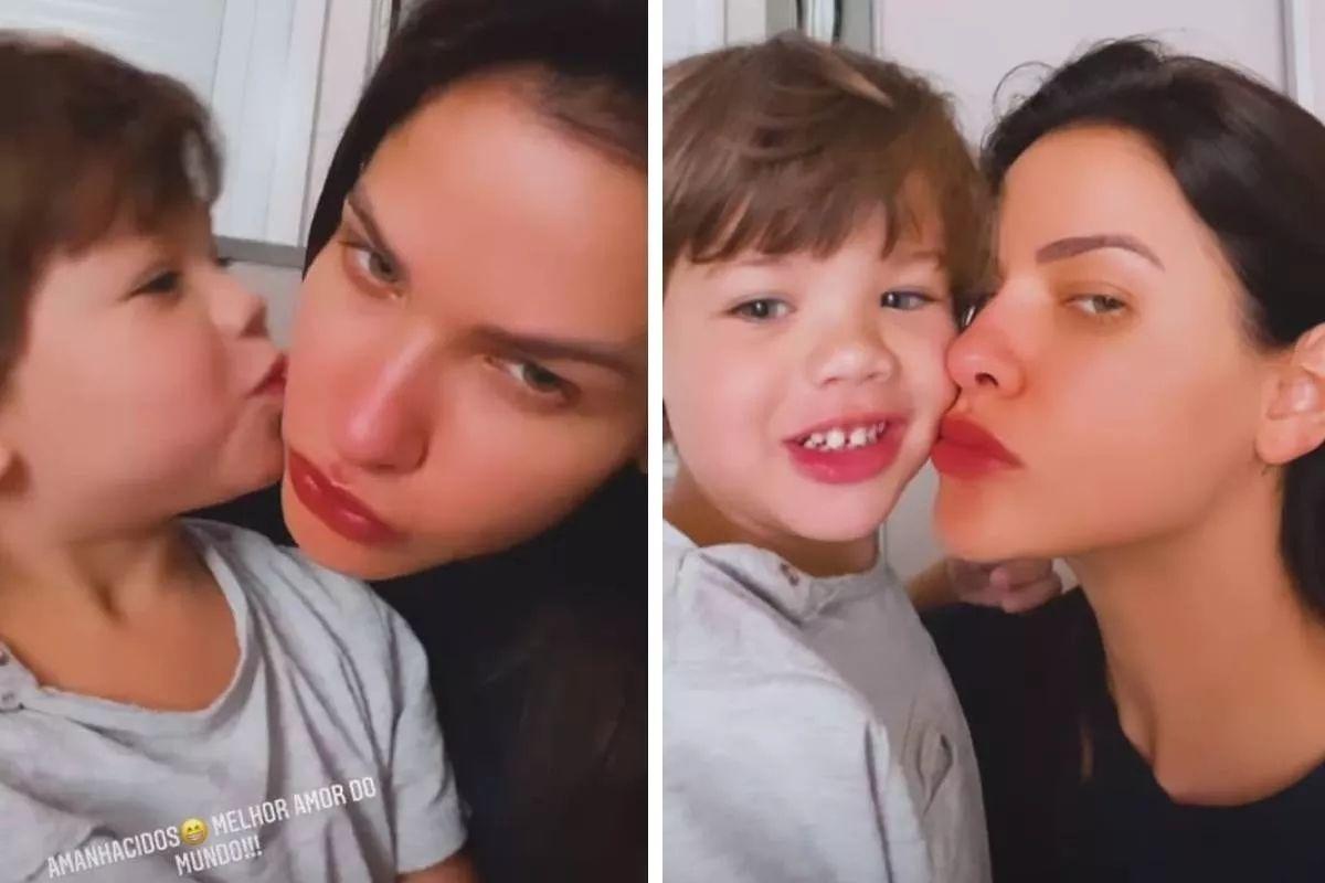 Nas imagens publicadas, a modelo e o filho trocam carinhos e declarações. “Mamãe, te amo muito”, diz Gabriel, depois de encher a mãe de beijos. “Amanhecidos. Melhor amor do mundo. Meu dengo”, se derreteu Andressa pelo pequeno.