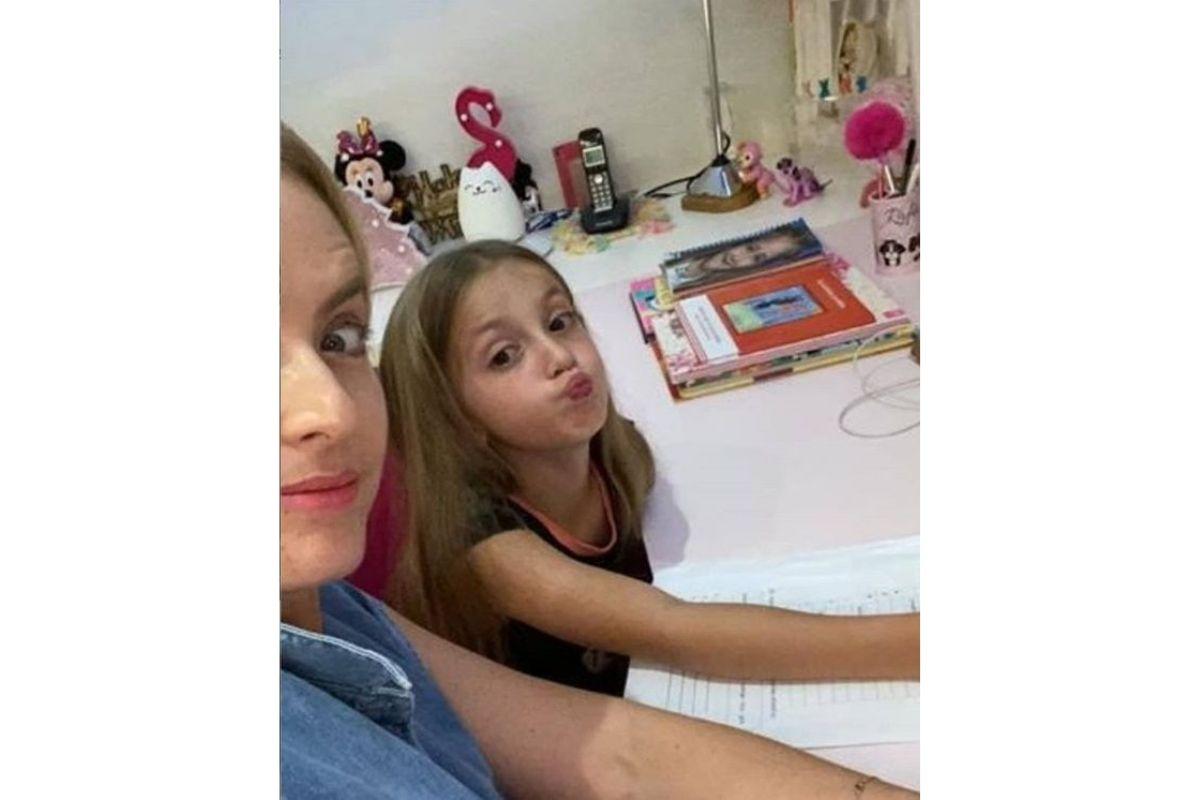Em um momento descontraído, a menina apareceu mandando um beijo para a câmera durante a quarentena, dentro do quarto, ao lado da mãe.
