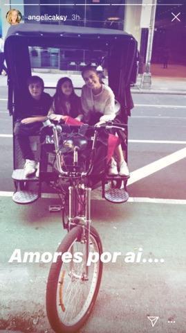 Nesta segunda-feira, 14, a apresentadora, que está fazendo uma participação especial em A Dona do Pedaço, surgiu pedalando em um parque da cidade norte-americana. Os apresentadores, Angélica e Luciano Huck, mostraram em seus stories no Instagram que estão em Nova York com os filhos.