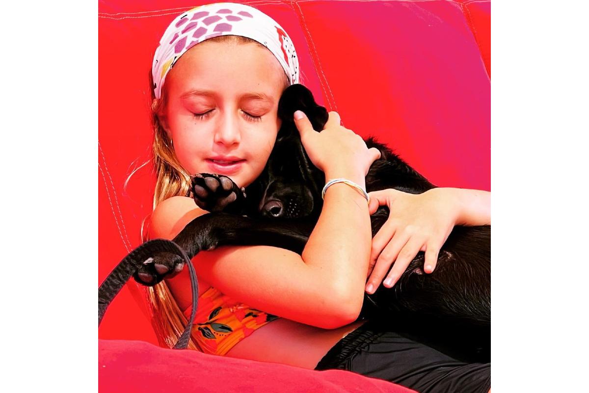 Eva apareceu abraçada com a cachorrinha. Ao publicar a foto, Angélica escreveu: “Aí meu coração! Minhas meninas! Adotar é tudo de bom”.