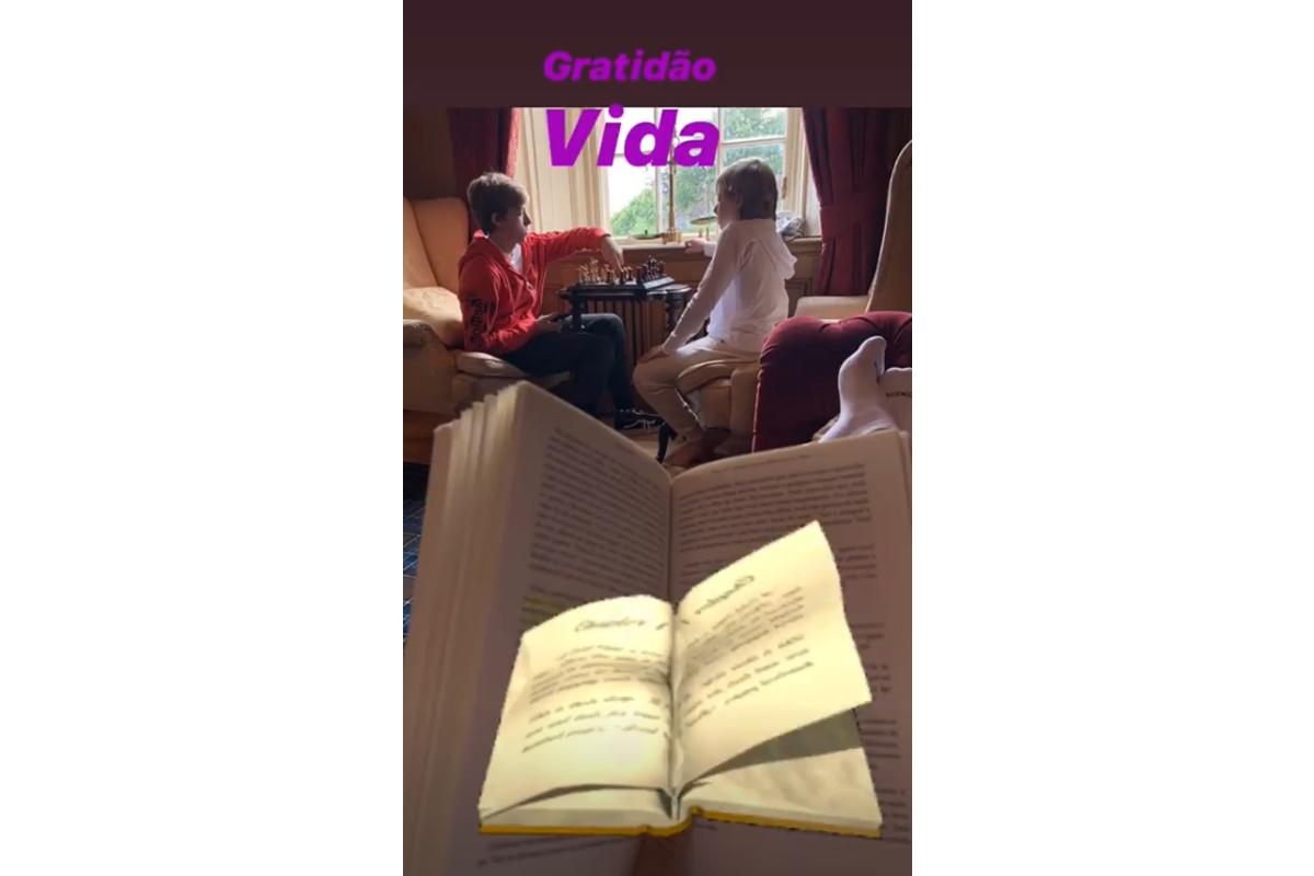 Angélica compartilhou uma foto rara de Benicio, seu filho de 11 anos, nesta terça-feira (9). Na imagem, o filho da apresentadora com o apresentador Luciano Huck aparece jogando xadrez com o irmão mais velho, Joaquim, de 14 anos.