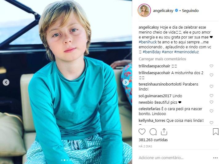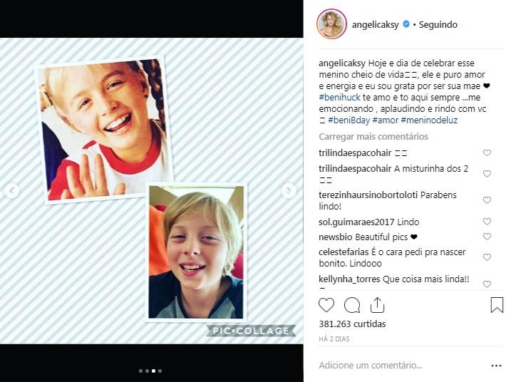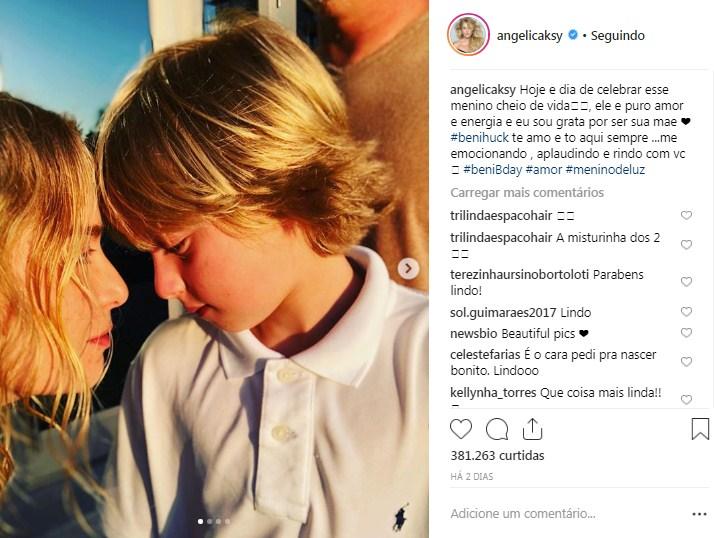 “Hoje é dia de celebrar esse menino cheio de vida??, ele é puro amor e energia e eu sou grata por ser sua mãe ❤️#benihuck te amo e to aqui sempre… Me emocionando, aplaudindo e rindo com vc?”, escreveu Angélica.