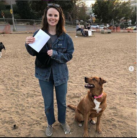 Em seu Instagram, a atriz postou uma foto em que estava com seu cachorro em um parque. No fundo da foto, um detalhe bem peculiar: uma das maiores estrelas de Hollywood com seus filhos.