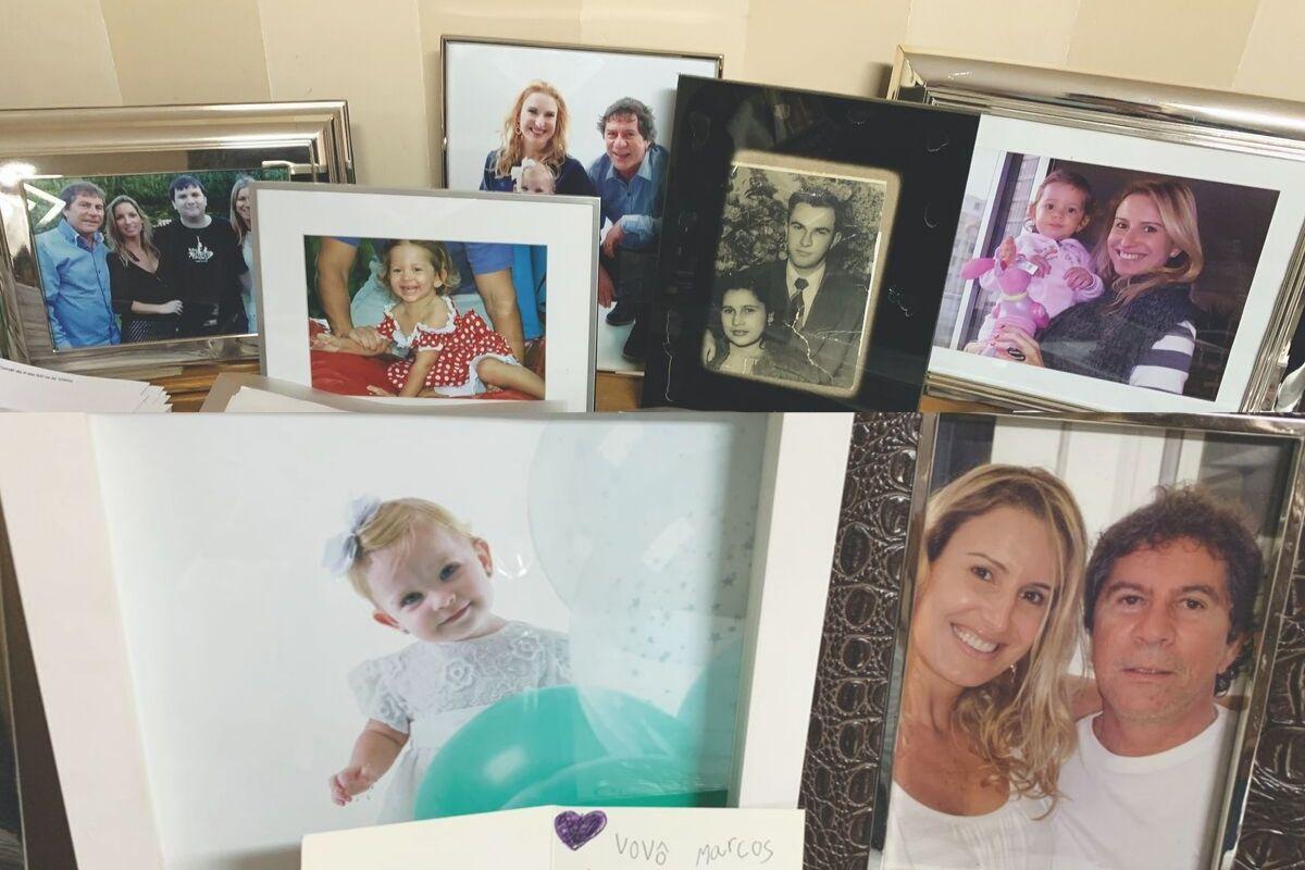 Em sua sala, ele guarda as imagens da família. Os porta-retratos são marca registrada do ambiente
