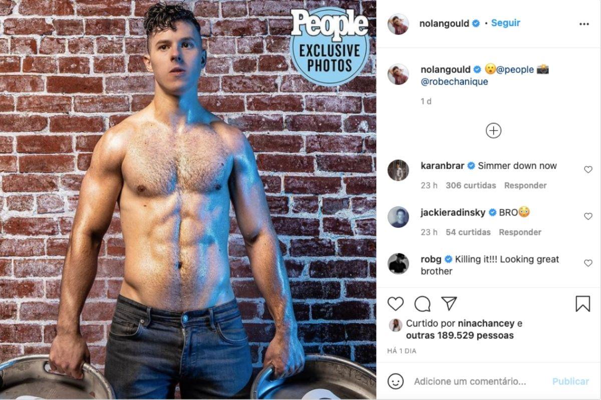 Conhecido por ter interpretado Luke Dunphy na série Modern Family, Nolan Gould surpreendeu seus fãs nas redes sociais ao postar foto sem camisa. A imagem rendeu comparações entre o menino no primeiro episódio do sitcom, em 2009, e 11 anos depois dele ter sido lançado ao ar.