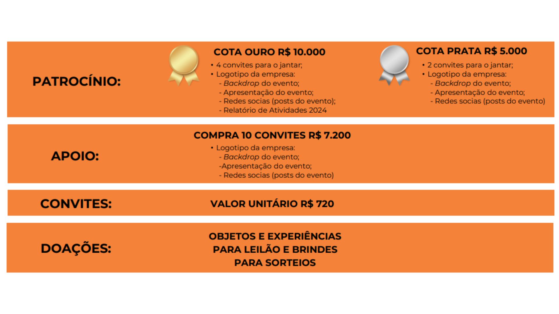 Se você deseja fazer parte desse impacto, a APAF está com cotas abertas para patrocínio e apoio do jantar beneficente, além da venda de convites:
