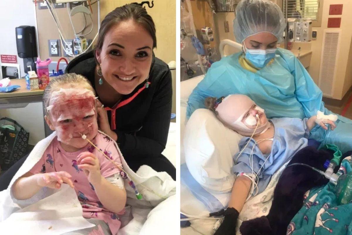 Segundo o Metro, o pai, que estava trabalhando, ouviu a filha gritar e correu para ajudar; imediatamente, ele começou a tirar as roupas queimadas e viu que a pele estava ‘derretendo’. A mãe da menina, Megan, de 28 anos, relembra o acidente aconteceu no início do ano, em 3 de fevereiro. “Ela estava brincando na estrada e Shay estava carregando suas ferramentas”, disse. “Ele a ouviu gritar. O vento pegou o calor intenso das brasas recém-queimadas e empurrou o calor para o rosto ela. Ela nunca esteve realmente em chamas. Ele não conseguia ver nada. Ele começou a tirar as roupas dela e viu o suéter dela derretendo na pele e o rosto dela derretendo”, relatou.