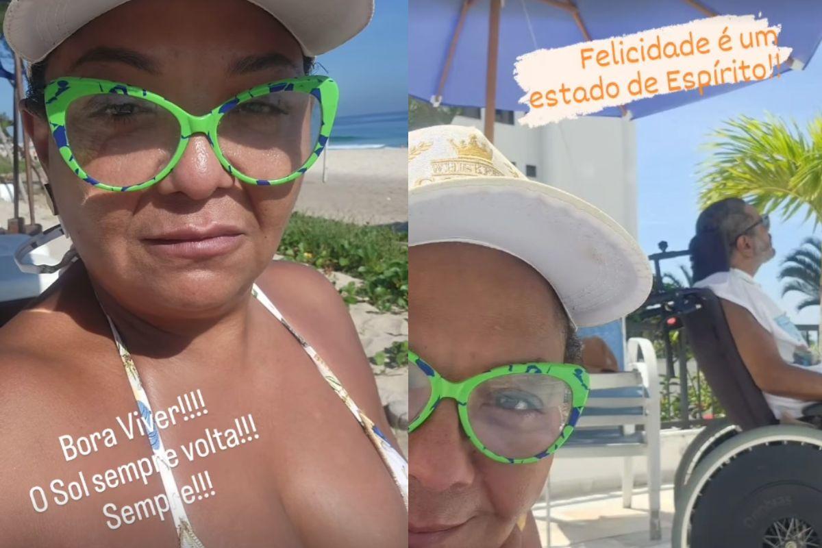 No Rio de Janeiro, Babi apareceu sorridente em registros e também aproveitou para mostrar o sambista curtindo o dia de sol ao ar livre. Na cadeira de rodas, ele estava ao fundo de uma das publicações feitas na sessão de stories da plataforma Instagram.