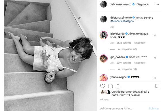 Yanna Lavigne, Isis Valverde, Fernanda Gentil e Paloma Bernardi foram algumas das famosas que comentaram a foto para demonstrar empatia nessa fase da vida de Débora.