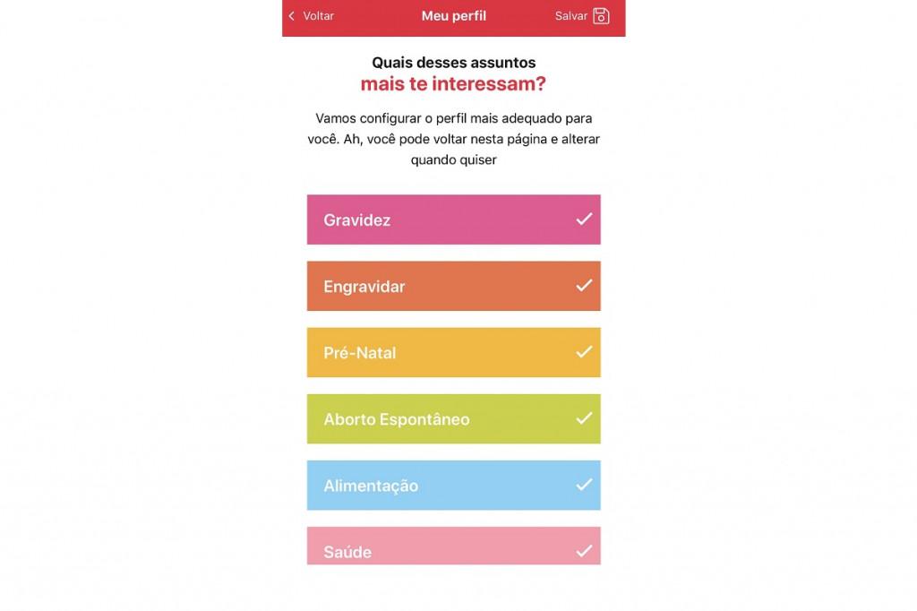 4. Agora, você pode escolher qual melhor categoria define o seu perfil (tentante, grávida, ou mãe/pai de recém-nascido, de bebê ou de criança)