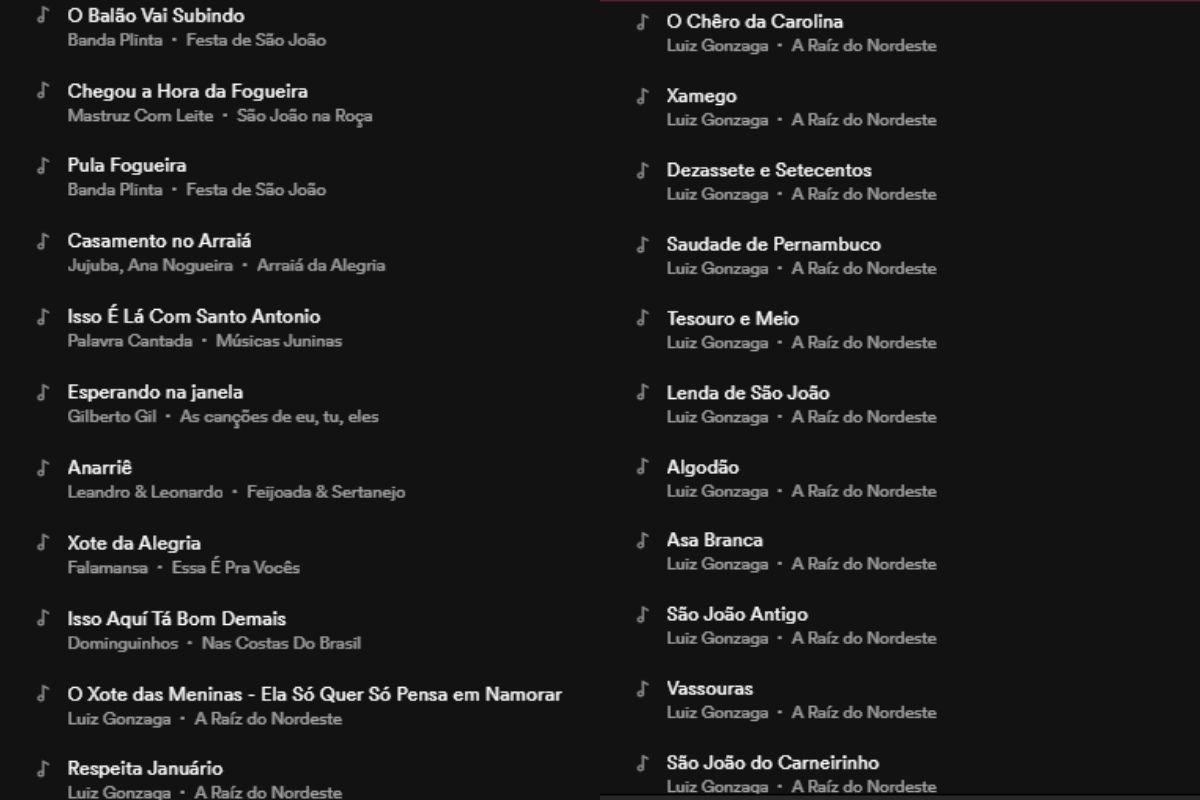 Você pode acessar nossa playlist especial no Spotify clicando nesse link. Veja abaixo alguns dos títulos que selecionamos para sua família, além de dicas para fazer sua própria festa junina em casa. Ela está super completa e com certeza vai deixar sua comemoração ainda mais divertida!