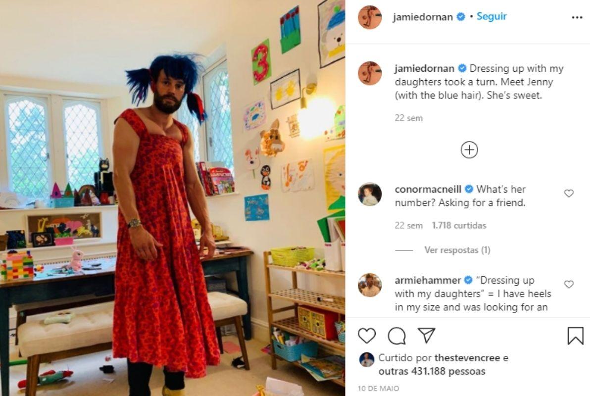 Jamie Dornan, o ator que interpretou Christian Grey em “50 Tons de Cinza”, contou recentemente para a Quem como está sendo a quarentena ao lado da família. O astro de 38 anos é pai de três filhas, Dulcie, de 7 anos de idade, Elva, de 4, e Alberta Maeve, de 1 ano e meio, fruto do relacionamento com a também atriz Amelia Warner.