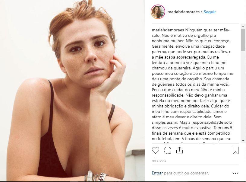 Mãe solo do João Pedro, de 9 anos, Mariah desabafou em seu Instagram sobre os deveres entre homens e mulheres na criação dos filhos. Em uma foto sozinha, a atriz reflete sobre os papéis desiguais e também sobre mulheres que carregam toda a responsabilidade de criar os filhos.
