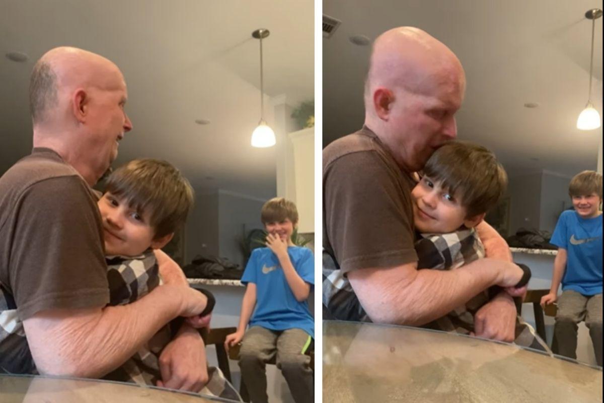 O vídeo, que comoveu muitos internautas, foi compartilhado por Emily Sisco, filha de Kevin, professora-adjunta de terapia ocupacional da Universidade Arkansas State. Nas imagens, o avô aparece abraçando as duas netas, filhas de Emily: Cope e Rigney.