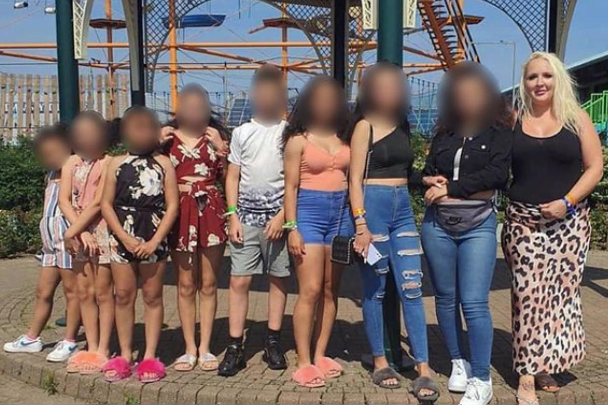 Marie e os oito filhos em parque de diversão, os filhos tem entre 10 e 22 anos (Foto: Reprodução/ Mirror UK)