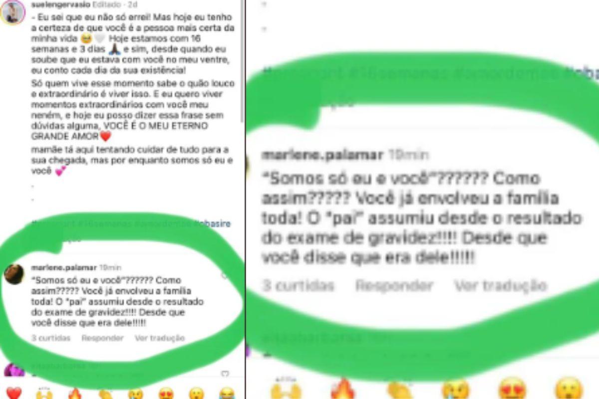Em um comentário já apagado da publicação, a avó de Vitão escreveu: “Somos só eu e você? Como assim? Você já envolveu a família toda! O ‘pai’ assumiu desde o resultado do exame de gravidez! Desde que você disse que era dele”.