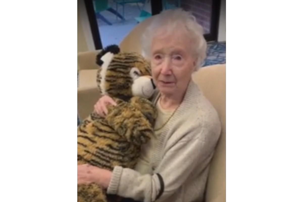 Esse foi o caso de Frida, uma senhora que vive em uma casa de repouso. Para minimizar as distâncias e saudades, ela ganhou um tigre de pelúcia e a felicidade e emoção dela ao receber o presente é simplesmente comovente.
