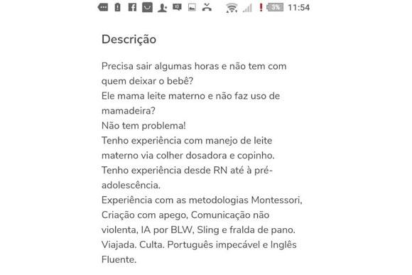 Uma mulher de 32 anos usou o site de anúncios, OLX, para fazer propaganda do seu serviço de babá e conseguir juntar dinheiro para cuidar do filho de 1 ano. Ela estava tendo dificuldade de encontrar vagas de emprego dentro da sua área, hotelaria. Em pouco tempo, Danielle passou a receber várias mensagens de vários clientes, mas não era propostas para o trabalho de babá.
