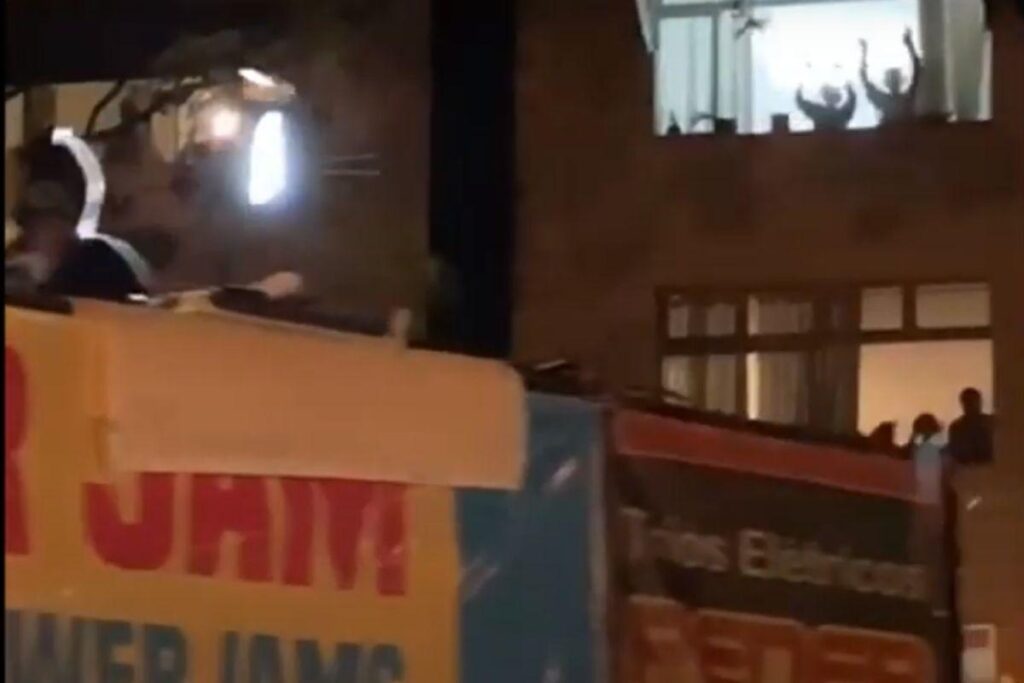 Quem disse que trio elétrico é sinônimo de aglomeração? Essa banda de Brasília está percorrendo as ruas da cidade em cima de um trio elétrico, cantando músicas sobre amor e esperança. Os fãs, diferentemente do que normalmente acontece, não caminham atrás do carro nas ruas, mas acompanham a apresentação das janelas dos prédios.
