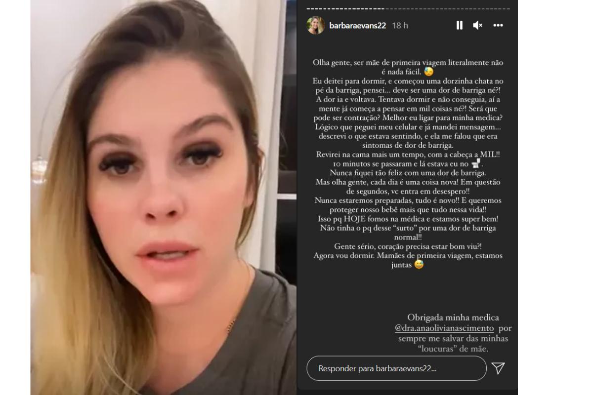 Através dos stories publicados no próprio perfil pessoal do Instagram, Bárbara compartilhou a experiência que lhe causou medo. “Olha gente, ser mãe de primeira viagem literalmente não é nada fácil. Eu deitei para dormir e começou uma dorzinha chata no pé da barriga, pensei… ‘Deve ser uma dor de barriga, né’? A dor ia e voltava. Tentava dormir e não conseguia, aí a mente já começa a pensar em mil coisas né?”, começou desabafando.