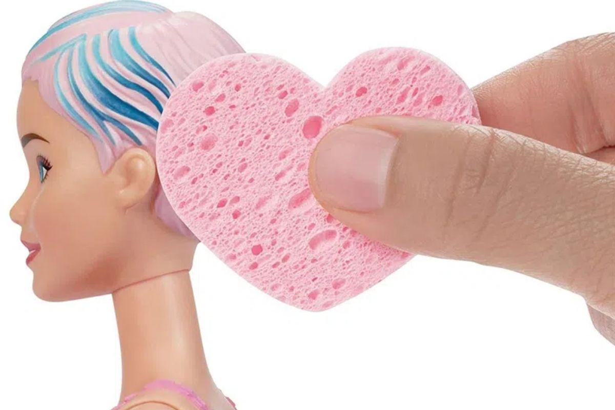 Na hora de brincar, basta passar a esponja mágica com água morna na boneca e se surpreender com o resultado de um tom de cabelo ou maquiagem diferente! O kit acompanha cinco itens: uma esponja, um look e acessórios que são inspirados em cachorros, gatos, ursos panda, lhamas e unicórnios. A gente amou!