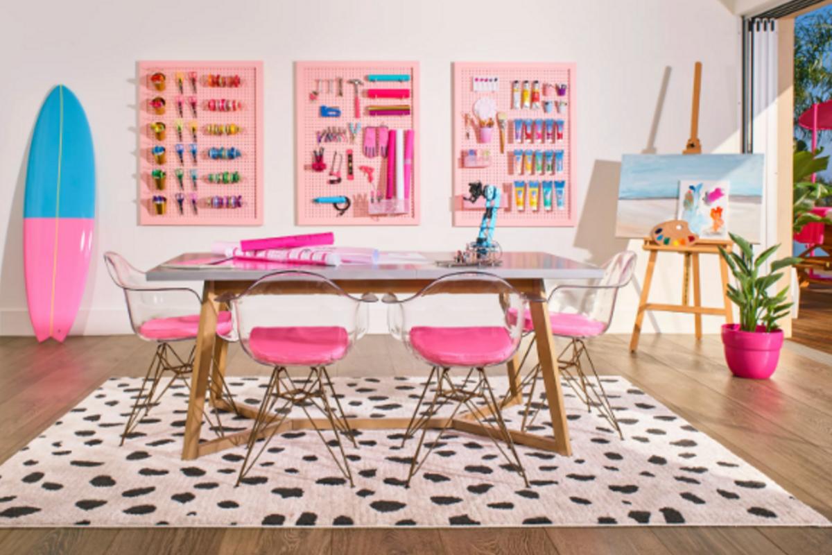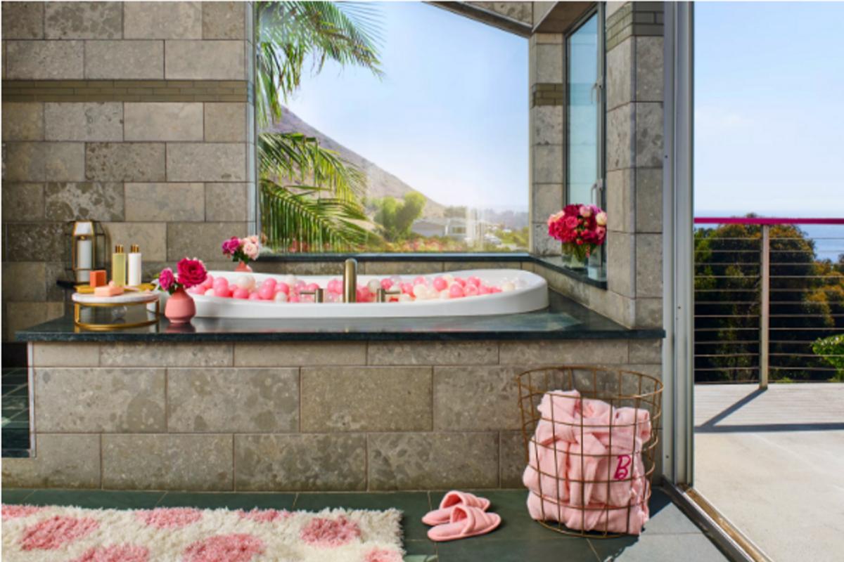 A casa é toda decorada no estilo cor-de-rosa da Barbie, em Malibu, de frente para o Oceano Pacífico. Segundo a Primistili, além de dois quartos e dois banheiros, a casa conta com cinema, quadra de esportes, área de meditação, cozinha equipada, piscina infinita e um closet repleto de roupas da boneca em tamanho real dos últimos 60 anos, incluindo os uniformes das carreiras dela.