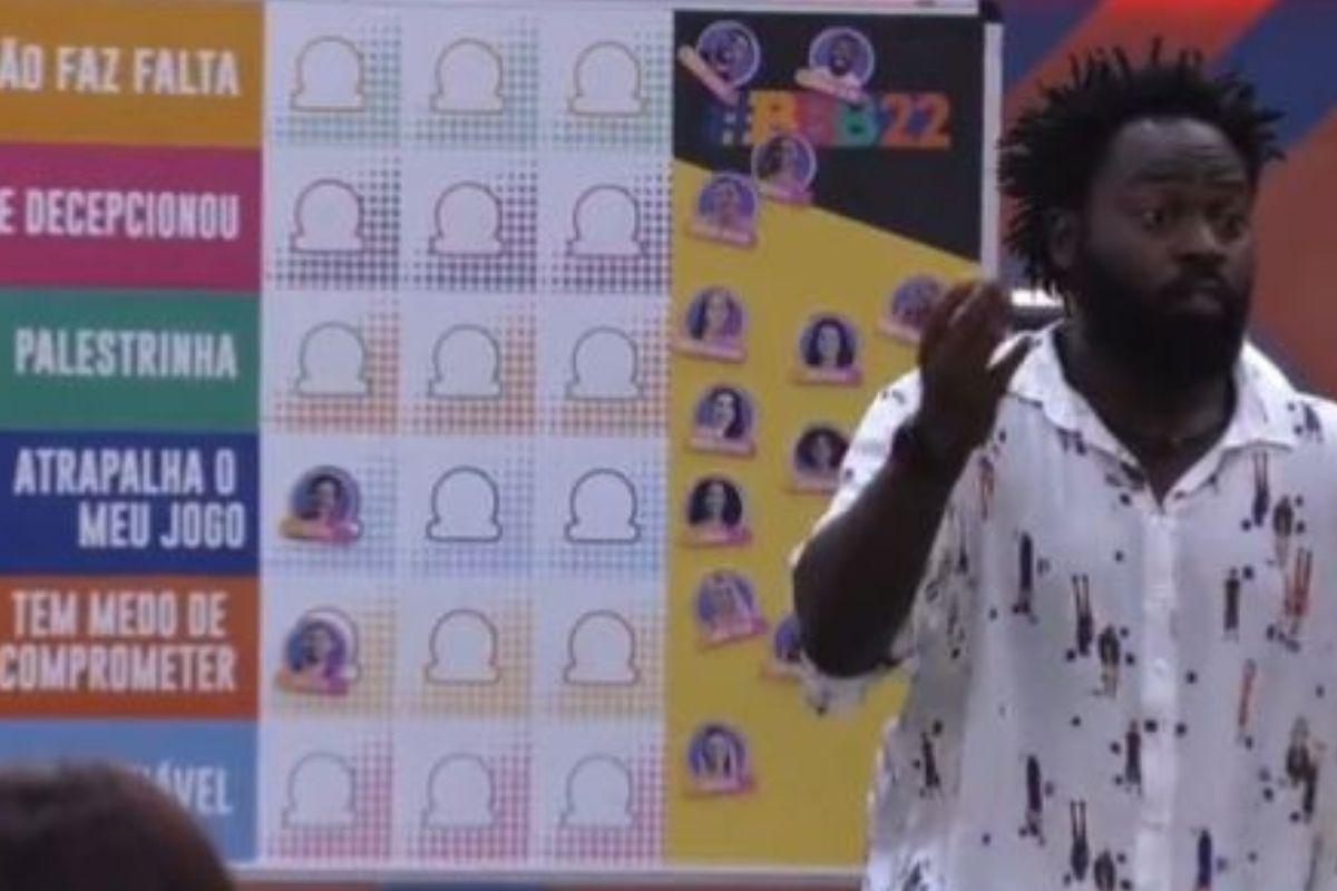 Douglas do BBB 22 está sendo fortemente atacado nas redes sociais após ter feito um comentário relacionado aos pais de Rodrigo, outro participante da casa. No jogo da discórdia feito ontem, todos deveriam classificar 3 pessoas nas seguintes categorias: não faz falta, já me decepcionou, palestrinha, atrapalha meu jogo, tem medo de se comprometer e não é confiável.