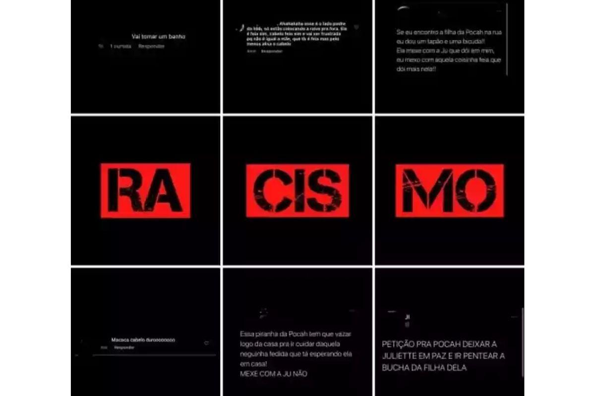 No último domingo, 18 de abril, o desentendimento entre Pocah e Juliette no Big brother Brasil 21, da TV Globo, repercutiu na internet. O perfil da cantora expôs frases racistas destinadas à Vitória, filha da cantora de 5 anos, no Instagram.