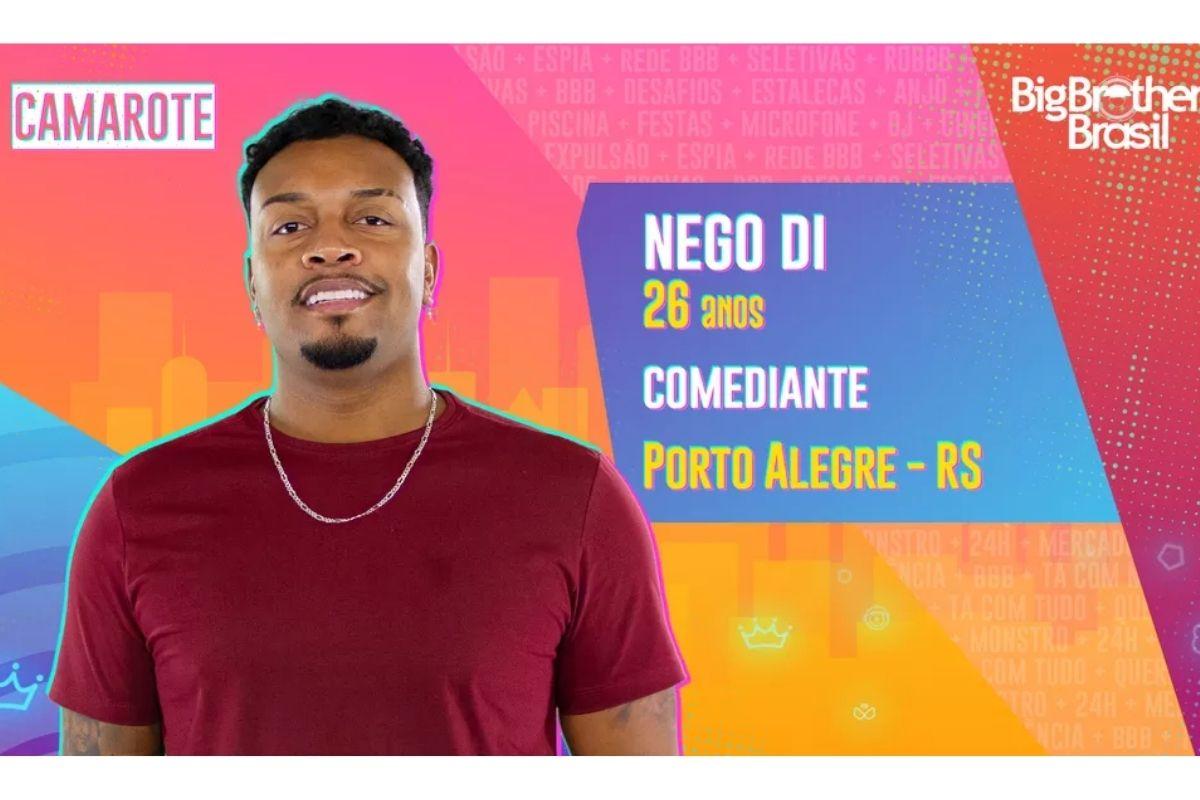Há alguns anos, Nego Di já desejava ser um dos participantes do Big Brother Brasil e se inscreveu para o programa. Quem diria que, anos depois, entraria na casa, no grupo Camarote: “Cheguei a me inscrever em 2016, achava que naquele momento estava pronto, porque eu mais precisava do que queria. Estava com o sonho de ser artista e precisava de um impulso, mas eu não estava pronto”, disse ele, em entrevista à Globo.