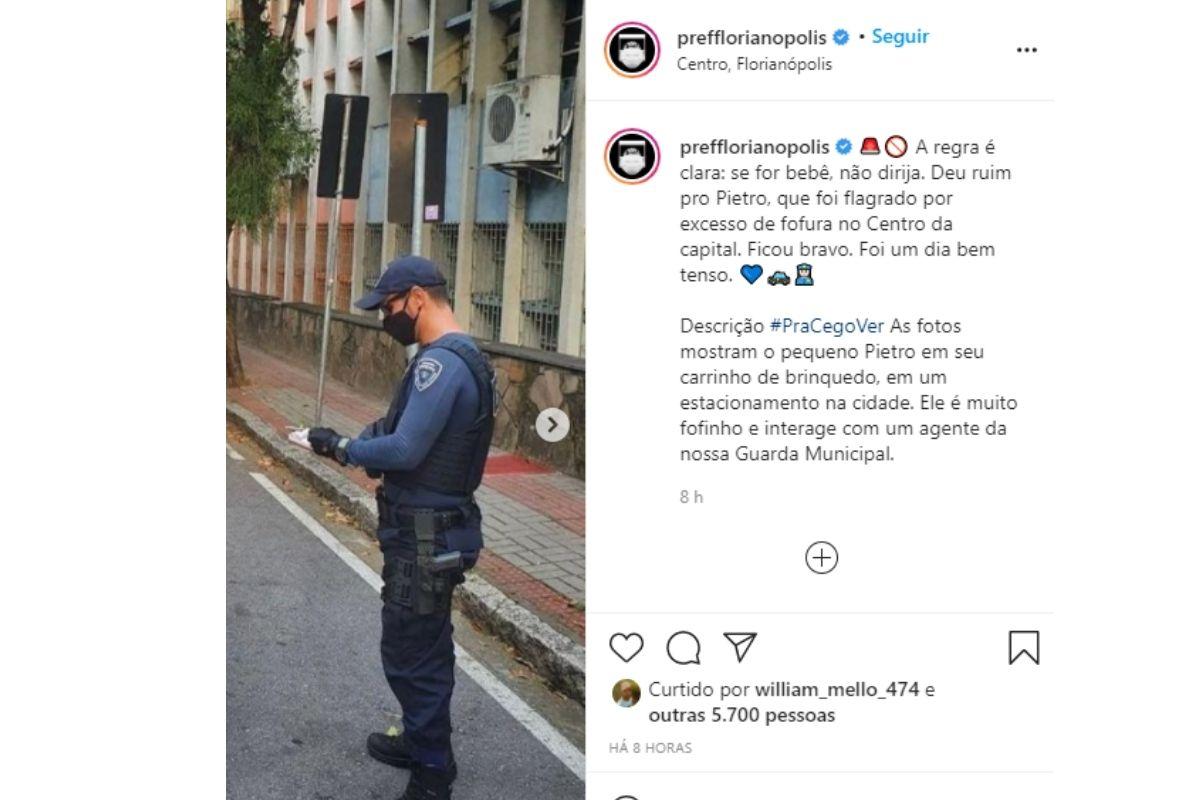 Bebê foi “multado” por dirigir carriho em Florianópolis (Foto: Reprodução / Instagram)