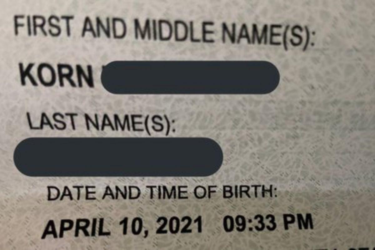 A usuária do Twitter contou que em vez de a certidão de nascimento conter o nome ‘Kora’, escolhido pela família, a recém-nascida recebeu o nome de ‘Korn’ – banda pioneira no gênero de rock and roll intitulado como “Metal”.