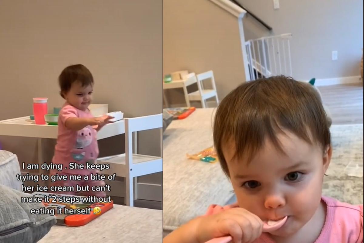 Emily Hoke é mãe de Bexley, uma menina que adora sorvete!  Recentemente, a mãe da bebê publicou um vídeo no TikTok mostrando as tentativas falhas da filha em compartilhar uma colher de sorvete com a parente. O conteúdo repercutiu e os usuários da plataforma acharam a atitude da menina hilária.