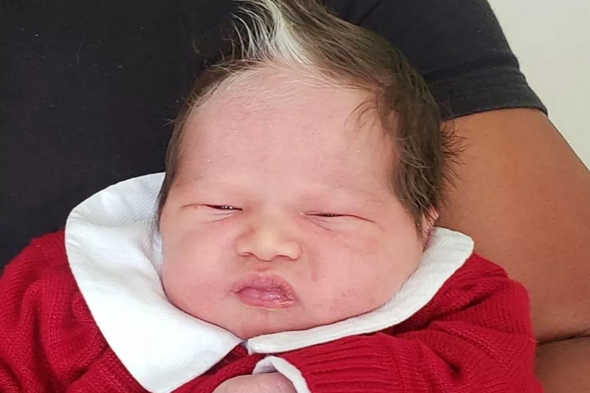 Um charme que já garantiu vários pedidos de foto com o recém-nascido e muitas curtidas nas redes sociais. Téo é o primeiro filho da vendedora Fernanda Oliveira dos Santos, que ficou muito apreensiva após dar à luz. Na sala de parto, antes de ela ver o filho, o marido, Enderson Eliziano da Conceição, e os médicos começaram a falar da mexa. “Fiquei desesperada porque não via o Téo. O meu marido olhando com olho arregalado e eu não via”, disse a mãe para o G1.