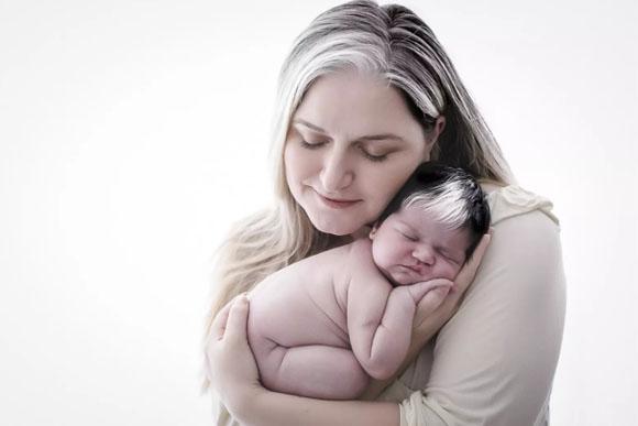 A mãe é Talyta Youssef de 40 anos. As duas têm piebaldismo, que causa uma desordem na produção da melanina, o pigmento que dá cor à pele.