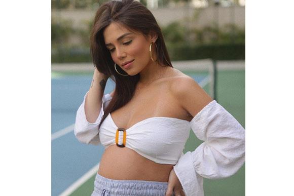 A blogueira está grávida de 8 meses do piloto de Stock Car Thiago Camilo. A menina se chamará Luísa.