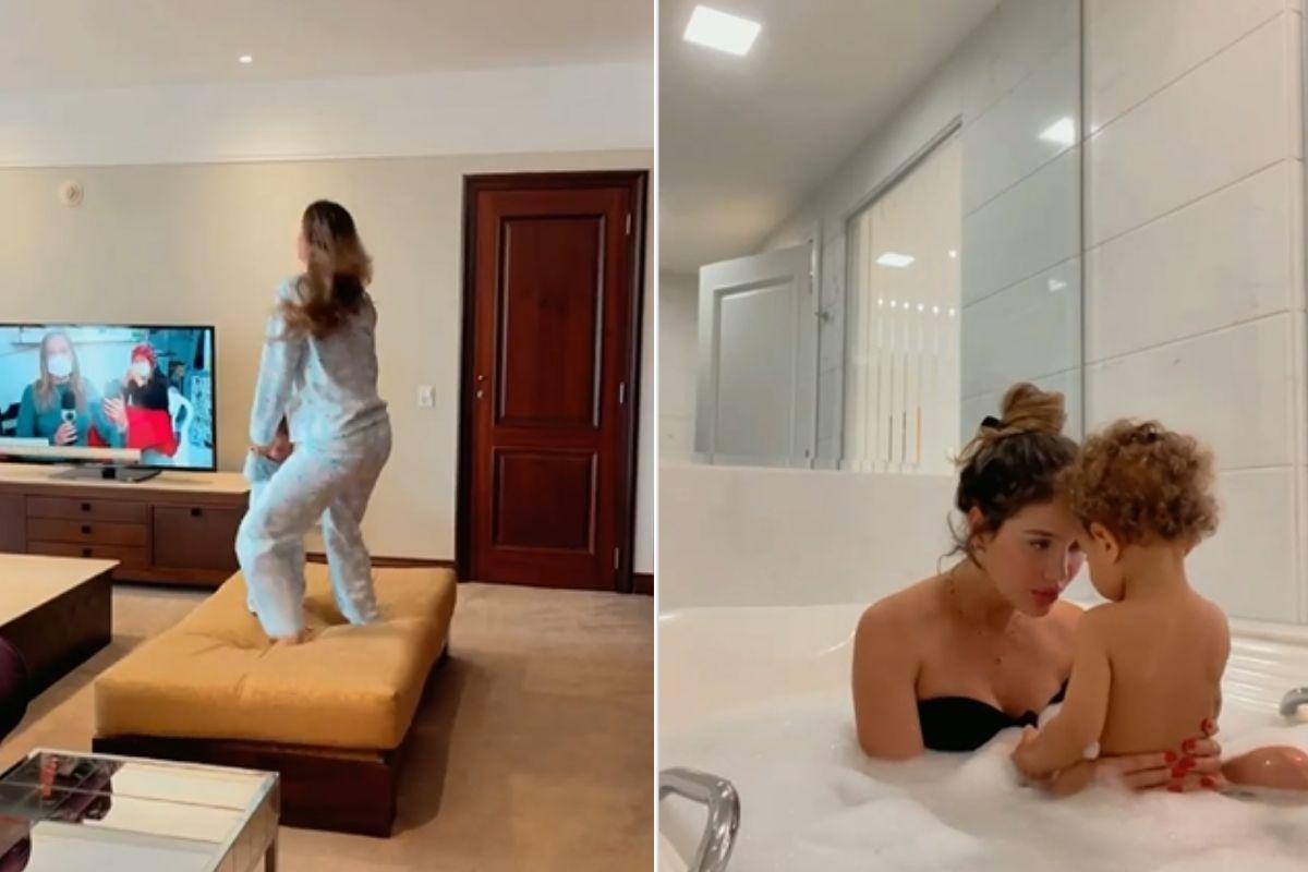 “Ia gravar um vídeo aqui agora para falar com vocês. Eu peguei a babá eletrônica, para falar que agora é só nós três, porque o papai foi para o show e Theo desapareceu da minha vista. Estou correndo aqui para ver o que ele está fazendo”, contou ela.