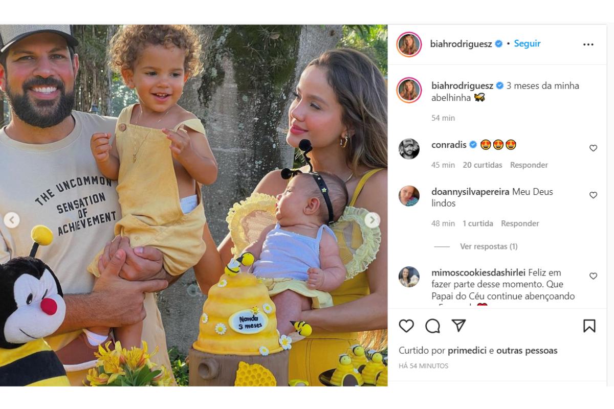 Nesta quinta-feira, 10 de fevereiro, Biah Rodrigues utilizou as redes sociais para mostrar detalhes do 3ºmesversário da caçula, Fernanda, fruto do relacionamento com o cantor Sorocaba. O casal já possui Theo, de 1 ano de vida.
