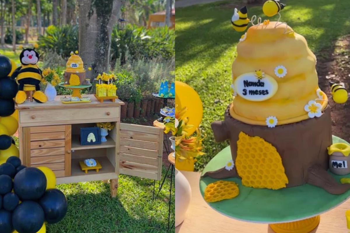 A decoração do mêsversário recebeu bastante atenção nos tons de amarelo e preto, por ser as cores principais das abelhas. Confira abaixo mais detalhes do evento: