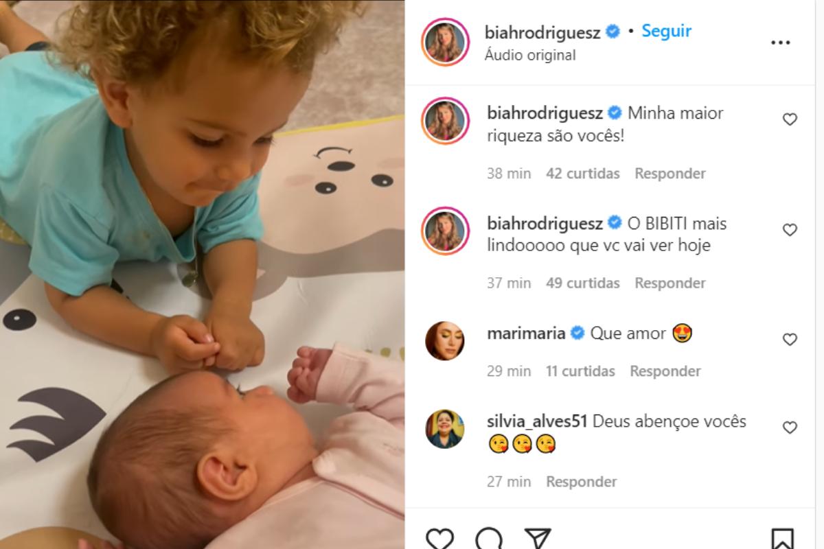“De agora aqui no chão Minha maior riqueza são vocês! O BIBITI mais lindooooo que vc vai ver hoje”, escreveu Biah Rodrigues na legenda e nos comentários da publicação que, acompanhada pela dela, obteve muitas mensagens de carinho por parte dos seguidores que a acompanham.