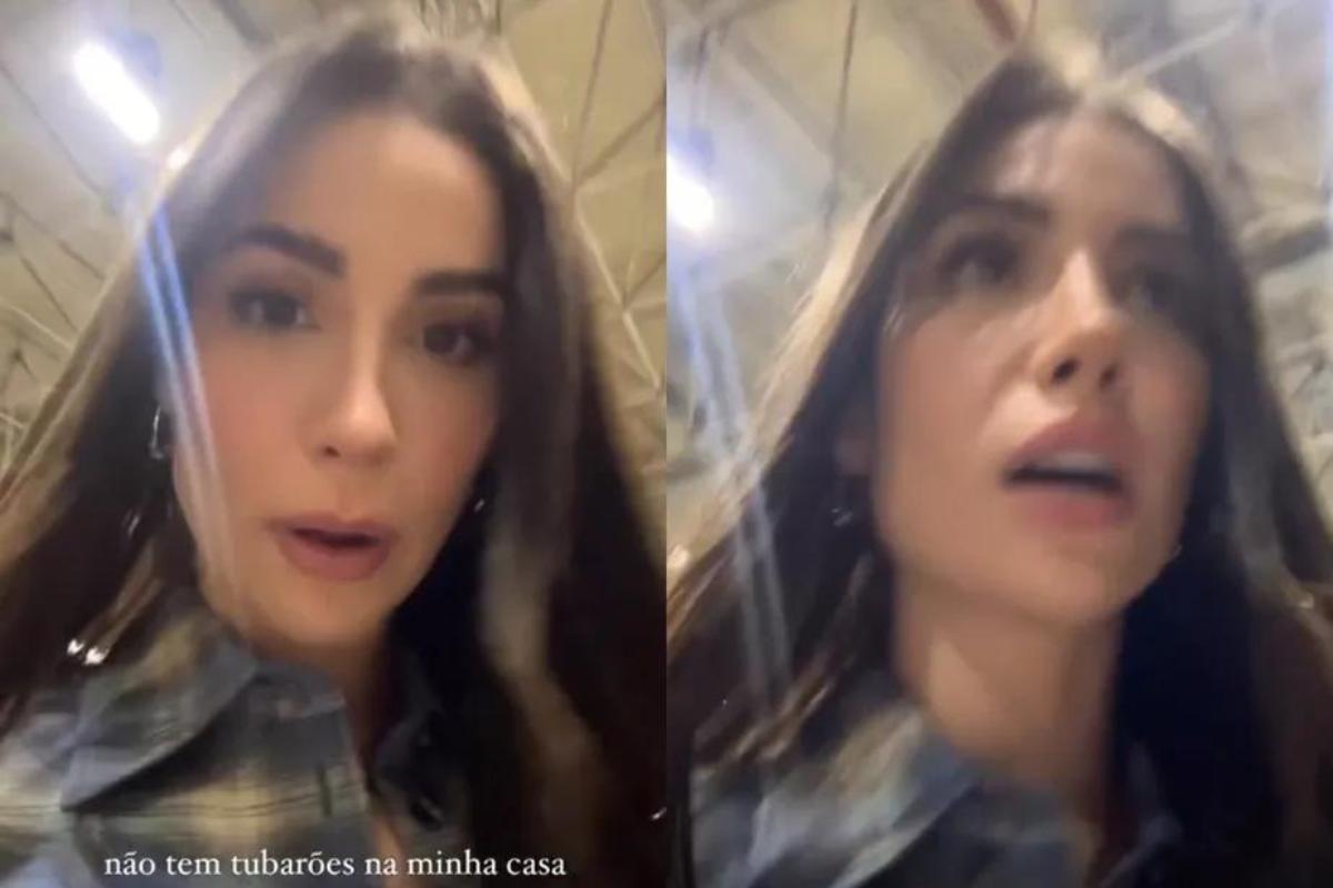 Bianca Andrade se pronunciando em seus stories sobre os tubarões em sua casa